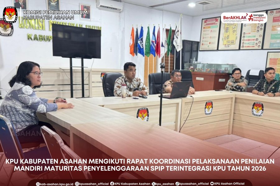KPU Kabupaten Asahan mengikuti Rapat Koordinasi Pelaksanaan Penilaian Mandiri Maturitas Penyelenggaraan SPIP Terintegrasi KPU Tahun 2026, Jumat (30/01/26). Kegiatan ini diadakan oleh KPU RI yang diikuti oleh KPU Provinsi/KIP Aceh dan KPU/KIP Kabupaten/Kota se-Indonesia sebagai langkah strategis dalam memperkuat tata kelola organisasi yang akuntabel dan berintegritas dengan mengundang narasumber dari BPKP. Dari KPU Kabupaten Asahan dihadiri oleh Sekretaris KPU Kabupaten Asahan Ery Dermawan, Kasubbag Teknis KPU Kabupaten Asahan Wiwin Azmi Harahap, Fungsional Ahli Pertama dan staf KPU Kabupaten Asahan. Kegiatan ini bertujuan untuk menyamakan persepsi, meningkatkan pemahaman, serta memastikan kesiapan seluruh satuan kerja dalam melaksanakan penilaian mandiri SPIP Terintegrasi Tahun 2026 secara objektif, sistematis, dan berkelanjutan. Melalui rapat koordinasi ini, diharapkan seluruh jajaran KPU termasuk KPU Kabupaten Asahan dapat berperan aktif dalam mengidentifikasi risiko, memperkuat pengendalian internal, serta mendorong peningkatan level maturitas SPIP sesuai dengan target yang telah ditetapkan sehingga mewujudkan penyelenggaraan pemilu yang profesional, transparan, dan berorientasi pelayanan publik. ....