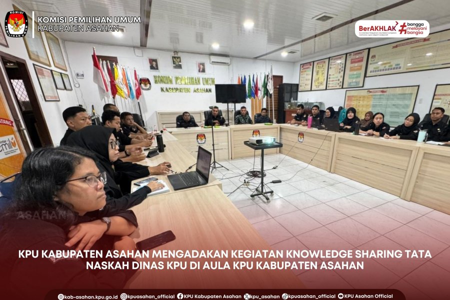 KPU Kabupaten Asahan Mengadakan Kegiatan Knowledge Sharing Tata Naskah Dinas KPU di Aula KPU Kabupaten Asahan, Rabu(4/2/26). Kegiatan ini diikuti oleh Ketua KPU Kabupaten Asahan Hidayat, Anggota KPU Kabupaten Asahan, Pangulu Siregar, M.Syah, Kristian Santo Yosefh Sinulingga, Sekretaris KPU Kabupaten Asahan Ery Dermawan, seluruh Kasubbag KPU Kabupaten Asahan beserta staf KPU Kabupaten Asahan. Kasubbag KUL KPU Kabupaten Asahan H.P.Harahap beserta staf berkesempatan untuk menyampaikan materi tata naskah dinas KPU yang mencakup klasifikasi naskah dinas, susunan format surat, ketentuan format penomoran surat dan kode klasifikasi arsip . Kegiatan Knowledge Sharing ini diadakan sebagai upaya meningkatkan pemahaman dan kompetensi seluruh personil KPU Kabupaten Asahan dalam penyusunan dan pengelolaan naskah dinas dan pengarsipan naskah dinas sesuai dengan ketentuan yang berlaku, mewujudkan keseragaman dan ketertiban administrasi, serta mendukung kelancaran, efektivitas, dan profesionalisme dalam pelaksanaan tugas kedinasan. Melalui Knowledge Sharing ini, diharapkan seluruh peserta mampu mengimplementasikan tata naskah dinas secara baik dan benar dalam pelaksanaan tugas sehari-hari, sehingga mendukung efektivitas kinerja organisasi. ....