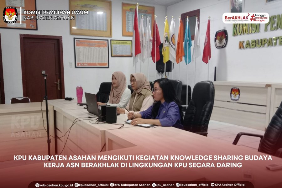 Komisi Pemilihan Umum Kabupaten Asahan mengikuti kegiatan Knowledge Sharing Budaya Kerja ASN BerAKHLAK di Lingkungan Sekretariat Jenderal KPU, Sekretariat KPU Provinsi, dan Sekretariat KPU Kabupaten/Kota, Kamis (25/09/25).