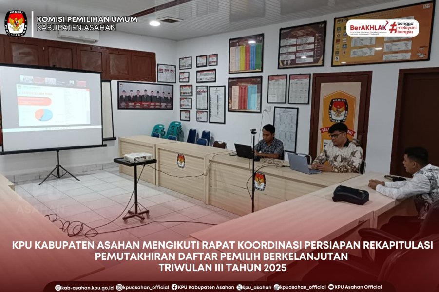 KOMISI PEMILIHAN UMUM KABUPATEN ASAHAN MENGIKUTI RAPAT KOORDINASI PERSIAPAN REKAPITULASI PEMUTAKHIRAN DAFTAR PEMILIH BERKELANJUTAN (PDPB) TRIWULAN III TAHUN 2025