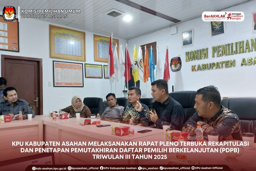 KOMISI PEMILIHAN UMUM KABUPATEN ASAHAN KEMBALI MELAKSANAKAN RAPAT PLENO TERBUKA REKAPITULASI DAN PENETAPAN PEMUTAKHIRAN DAFTAR PEMILIH BERKELANJUTAN (PDPB) TRIWULAN III TAHUN 2025