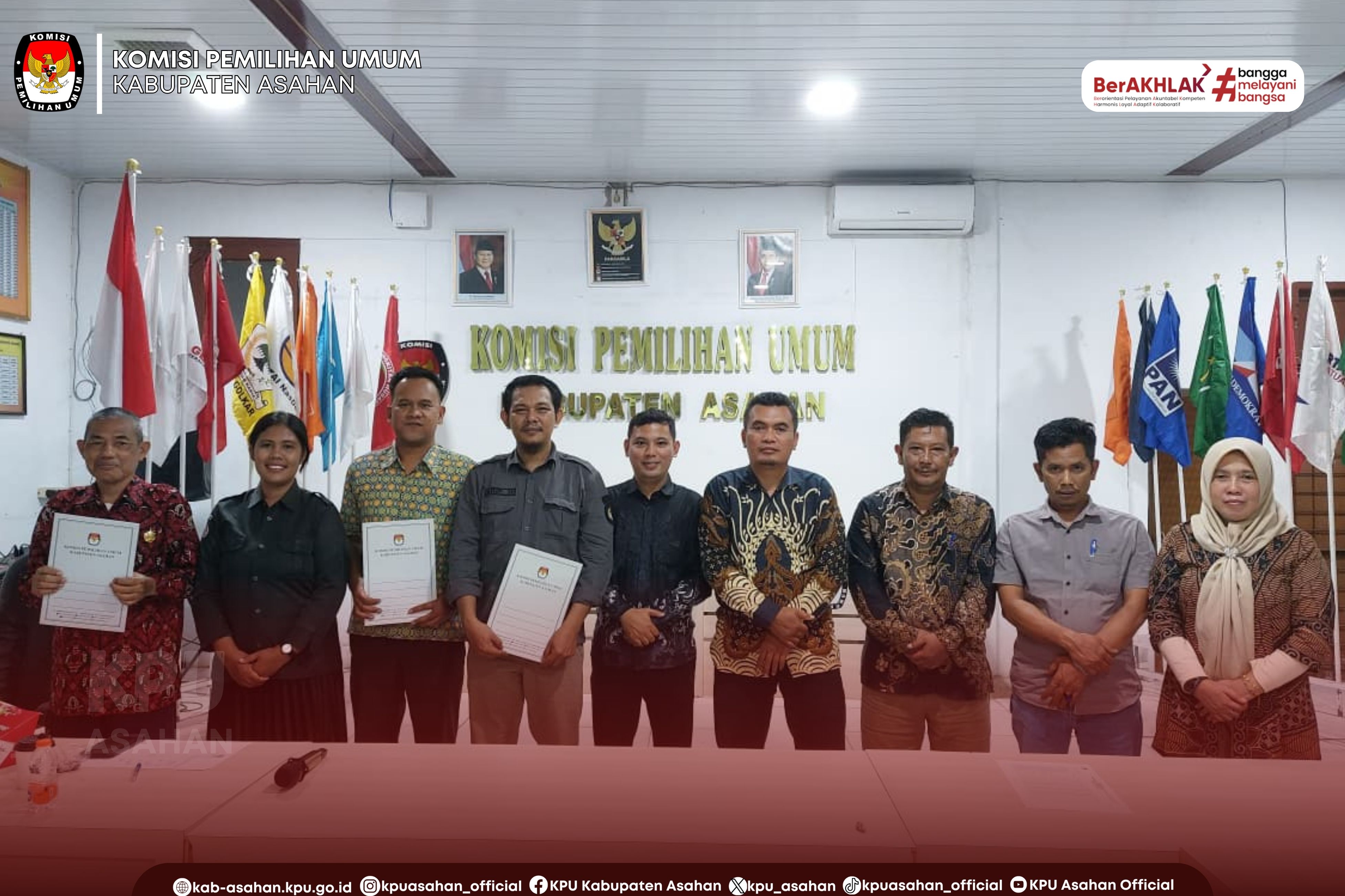 Kegiatan ini dihadiri oleh Ketua KPU Kabupaten Asahan Hidayat, seluruh Anggota KPU Kabupaten Asahan, M.Syah, Nurasli Napitupulu, Kristian Sinulingga, dan Pangulu Siregar, Kasubbag Perencanaan, Data dan Informasi KPU Kabupaten Asahan Sri Elkaida Harahap dan staf sekretariat KPU Kabupaten Asahan.