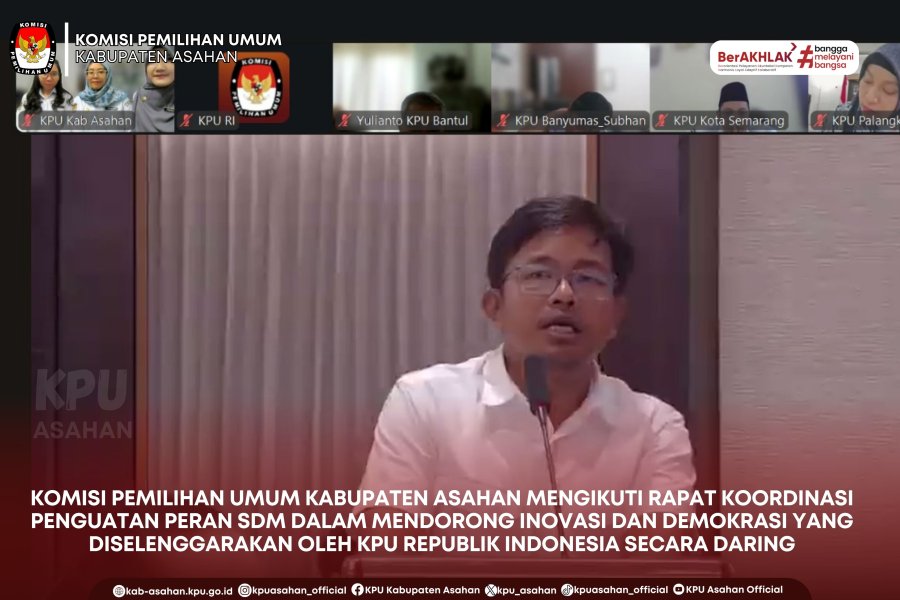 KOMISI PEMILIHAN UMUM KABUPATEN ASAHAN MENGIKUTI RAPAT KOORDINASI PENGUATAN PERAN SDM DALAM MENDORONG INOVASI DAN DEMOKRASI YANG DISELENGGARAKAN OLEH KPU REPUBLIK INDONESIA SECARA DARING