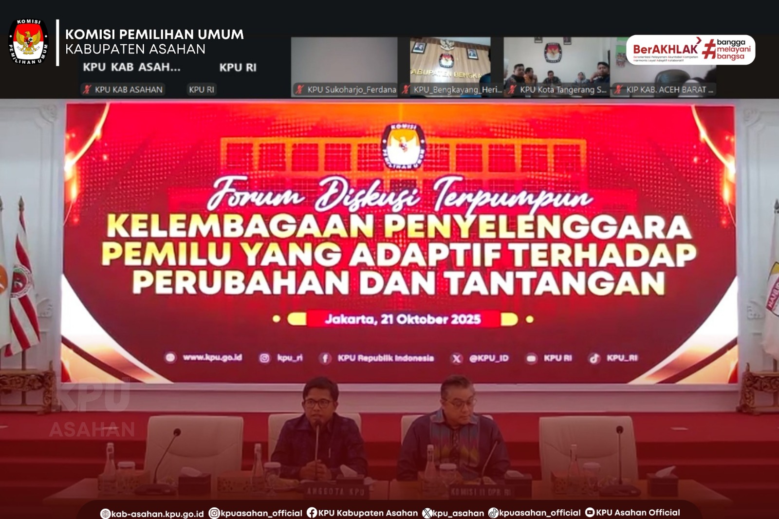 KPU Kabupaten Asahan mengikuti Zoom Meeting Forum Diskusi Terpumpun (FDT) Desain Kelembagaan Penyelenggara Pemilu di Indonesia, Selasa(21/10/2025).