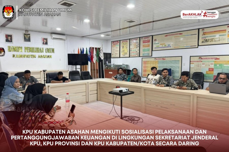 KPU Kabupaten Asahan Mengikuti Sosialisasi Pelaksanaan dan Pertanggungjawaban Keuangan di Lingkungan Sekretariat Jenderal KPU, KPU Provinsi dan KPU Kabupaten/Kota yang berlangsung secara daring, Jum’at (14/11/25).