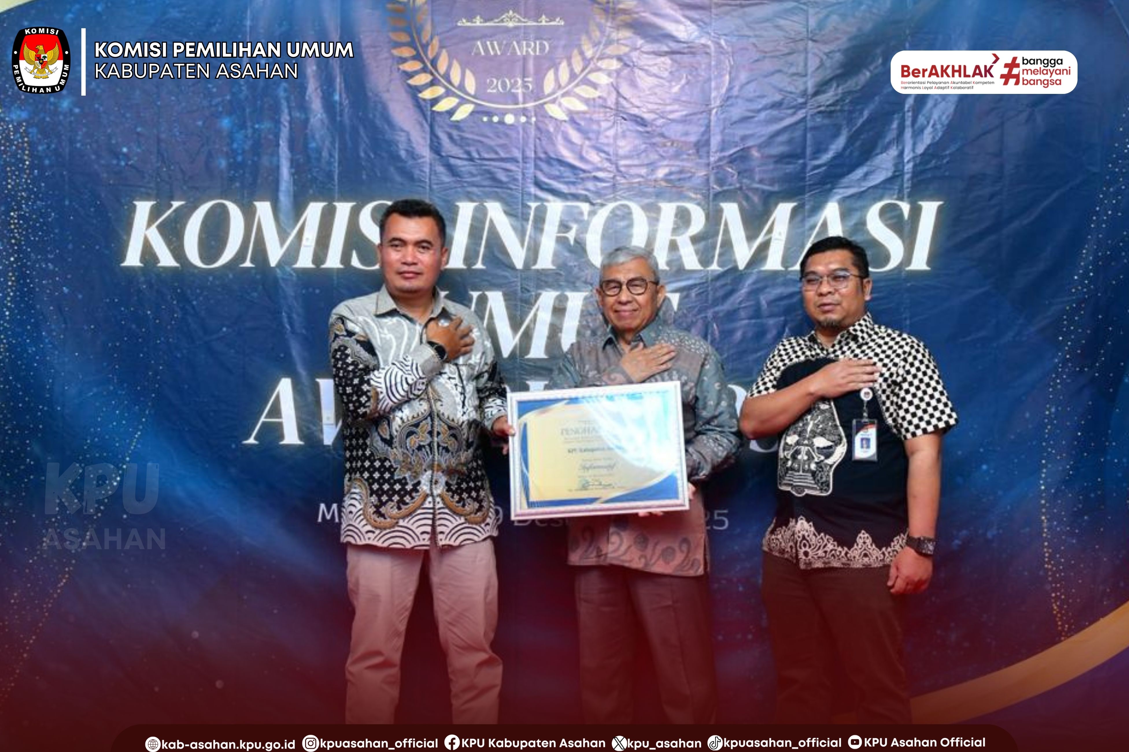 KOMISI PEMILIHAN UMUM KABUPATEN ASAHAN MENERIMA PENGHARGAAN KETERBUKAAN INFORMASI BADAN PUBLIK TAHUN 2025 SEBAGAI BADAN PUBLIK INFORMATIF