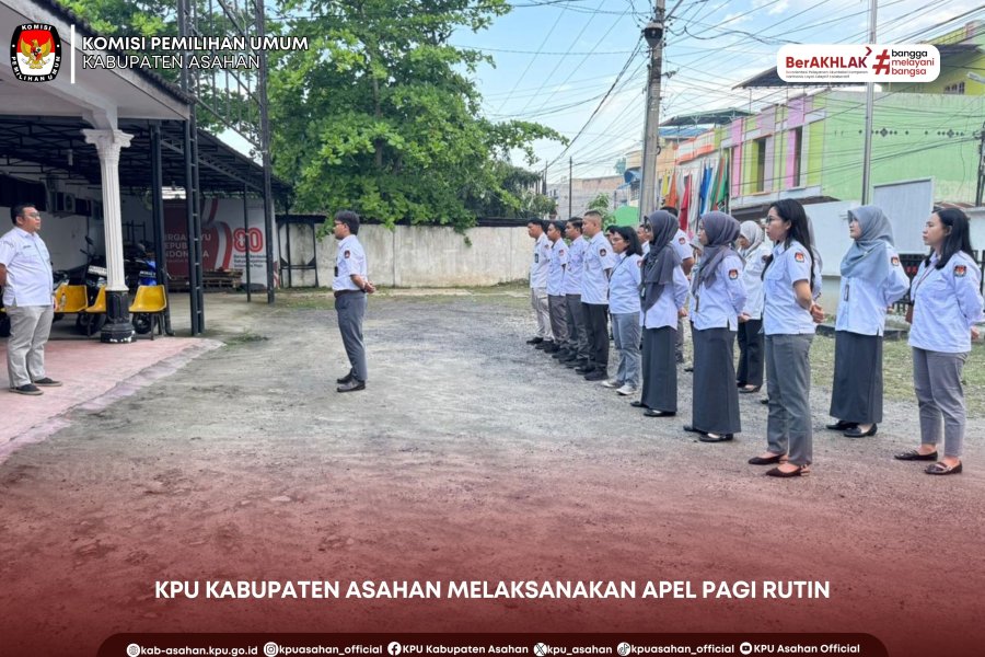 Bertindak sebagai pembina apel pagi yaitu Sekretaris KPU Kabupaten Asahan Ery Dermawan yang diikuti oleh seluruh pegawai Sekretariat KPU Kabupaten Asahan. Beliau menyampaikan untuk tetap menjaga kedisiplinan baik dalam bekerja dan kehadiran sehingga dapat meneguhkan komitmen dalam memberikan pelayanan terbaik bagi masyarakat dan demokrasi.