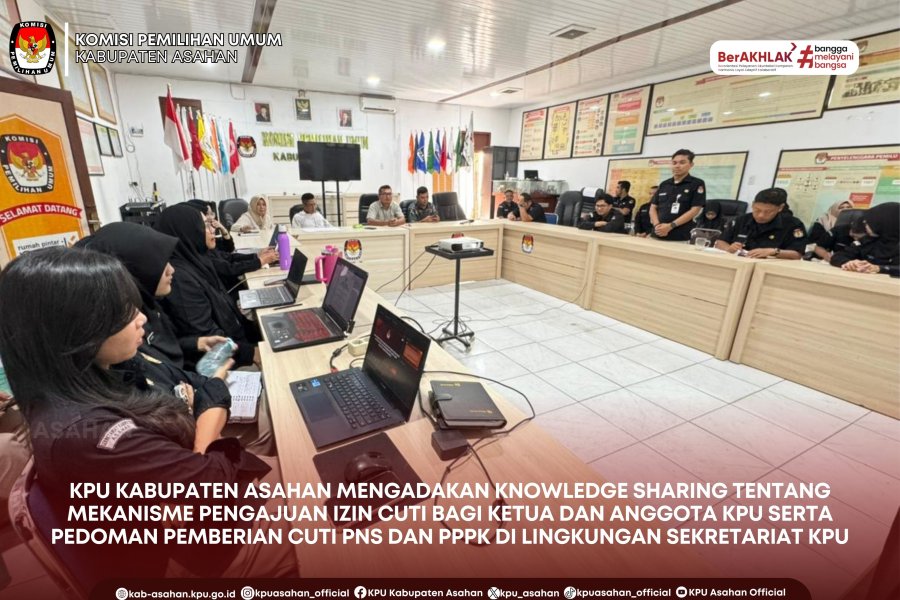 KPU KABUPATEN ASAHAN MENGADAKAN KNOWLEDGE SHARING TENTANG MEKANISME PENGAJUAN IZIN CUTI BAGI KETUA DAN ANGGOTA KPU KABUPATEN/KOTA SERTA PEDOMAN PEMBERIAN CUTI PNS DAN PPPK DI LINGKUNGAN KPU