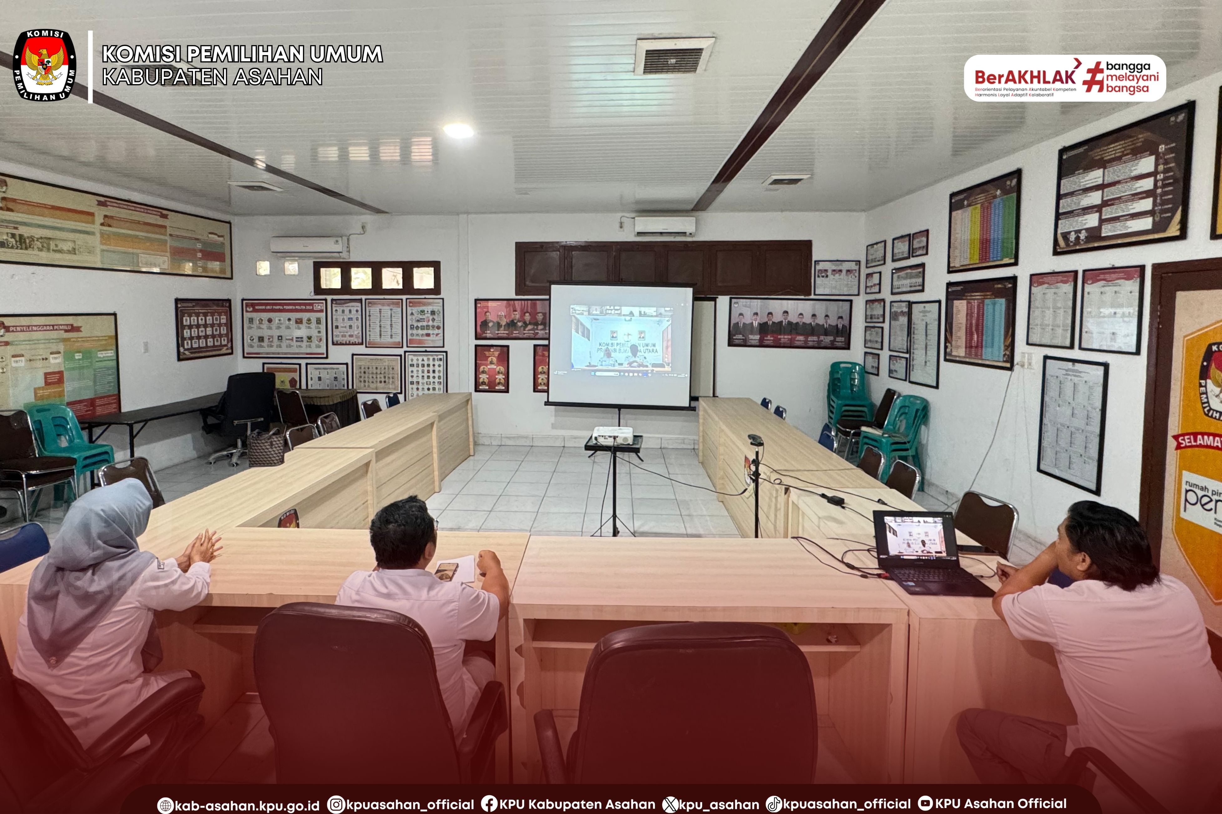 Kegiatan yang dilaksanakan secara daring ini diikuti oleh seluruh KPU Kabupaten/Kota se- Sumatera Utara termasuk KPU Kabupaten Asahan yang dihadiri oleh Sekretaris KPU Kabupaten Asahan Ery Dermawan, Kasubbag SDM KPU Kabupaten Asahan Siti Masari dan staf SDM KPU Kabupaten Asahan.