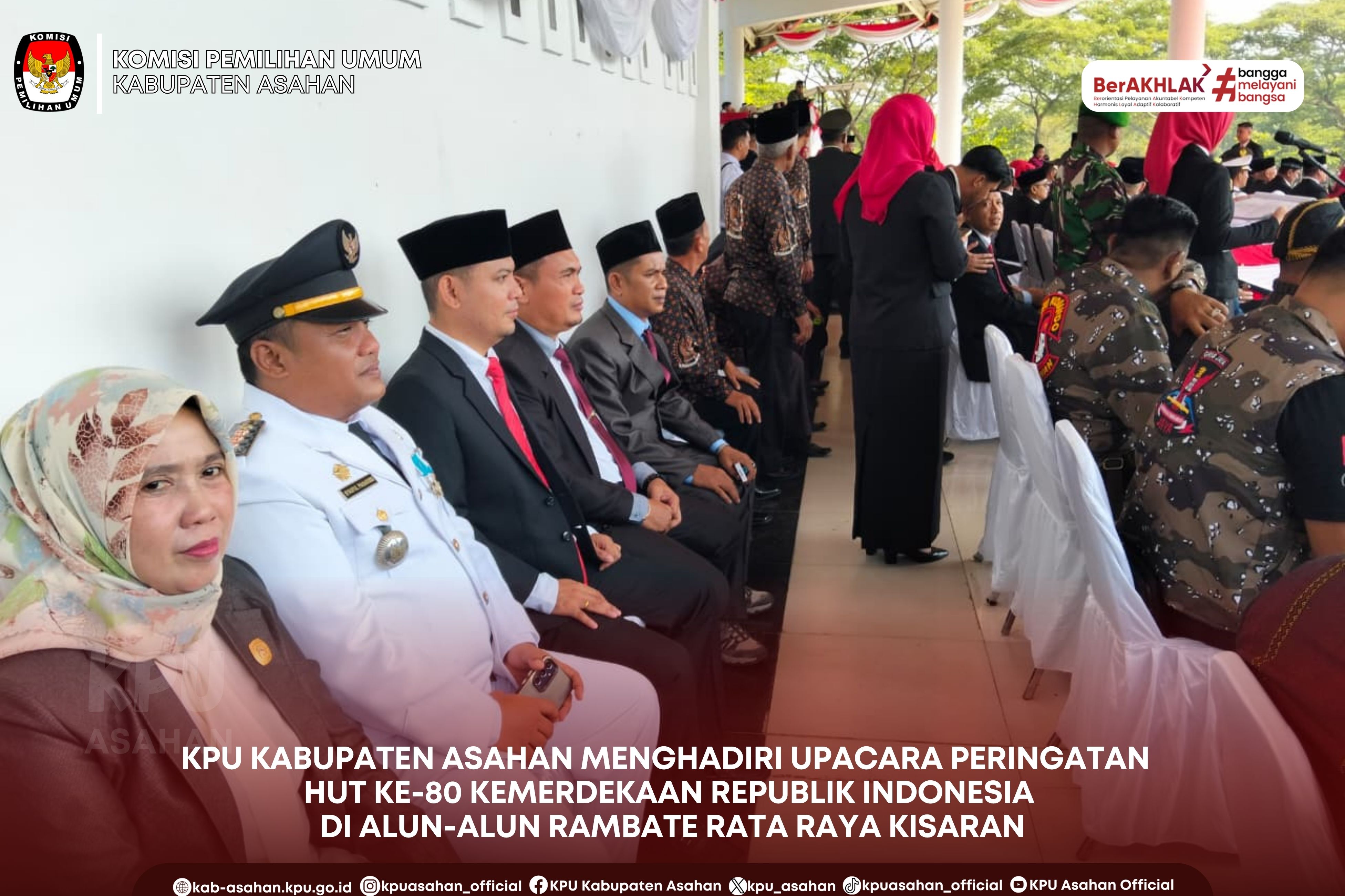 KOMISI PEMILIHAN UMUM KABUPATEN ASAHAN MENGHADIRI UPACARA PERINGATAN HARI ULANG TAHUN KE-80 KEMERDEKAAN REPUBLIK INDONESIA YANG DILAKSANAKAN DI ALUN-ALUN RAMBATE RATA RAYA KISARAN