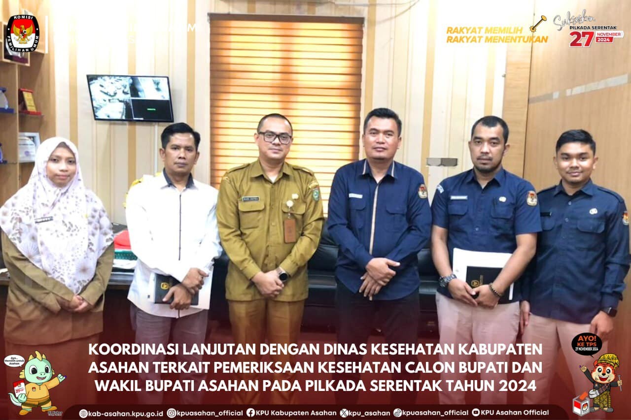 KOORDINASI LANJUTAN DENGAN DINAS KESEHATAN KABUPATEN ASAHAN TERKAIT PEMERIKSAAN KESEHATAN CALON BUPATI DAN WAKIL BUPATI ASAHAN PADA PILKADA SERENTAK TAHUN 2024