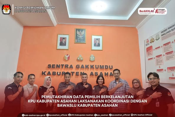 Dalam rangka Pemutakhiran Data Pemilih Berkelanjutan (PDPB) Komisi Pemilihan Umum (KPU) Kabupaten Asahan melaksanakan Koordinasi dengan Bawaslu Kabupaten Asahan, Rabu (18/06/25).