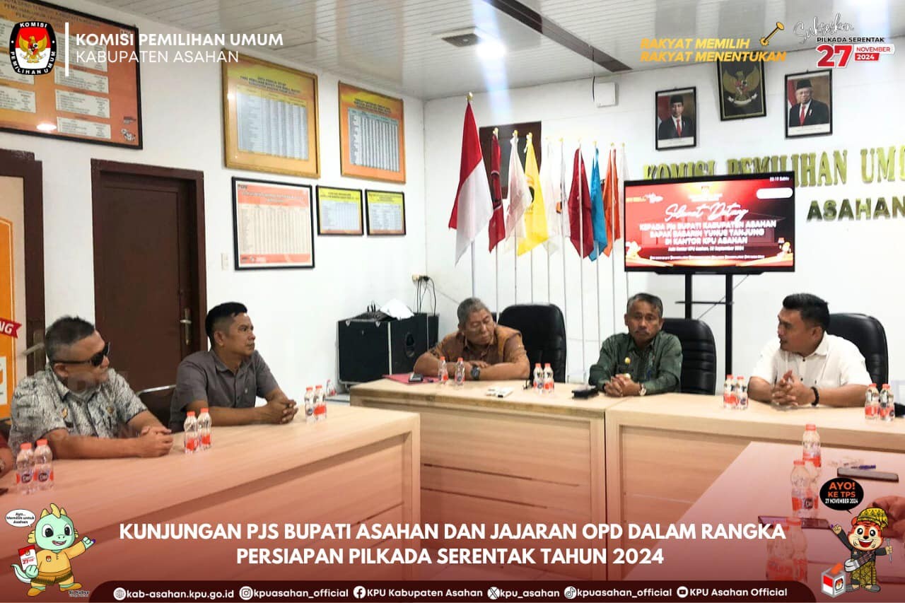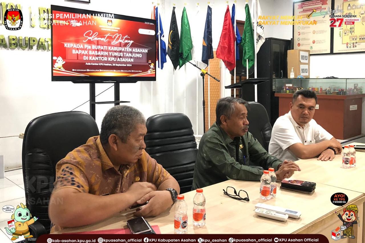 KPU Asahan menerima kunjungan Pjs. Bupati Asahan Drs. Basarin Yunus Tanjung, M.Si dalam rangka persiapan Pilkada Serentak Tahun 2024 bertempat di Aula Kantor KPU Asahan, Kamis (26/09/24).