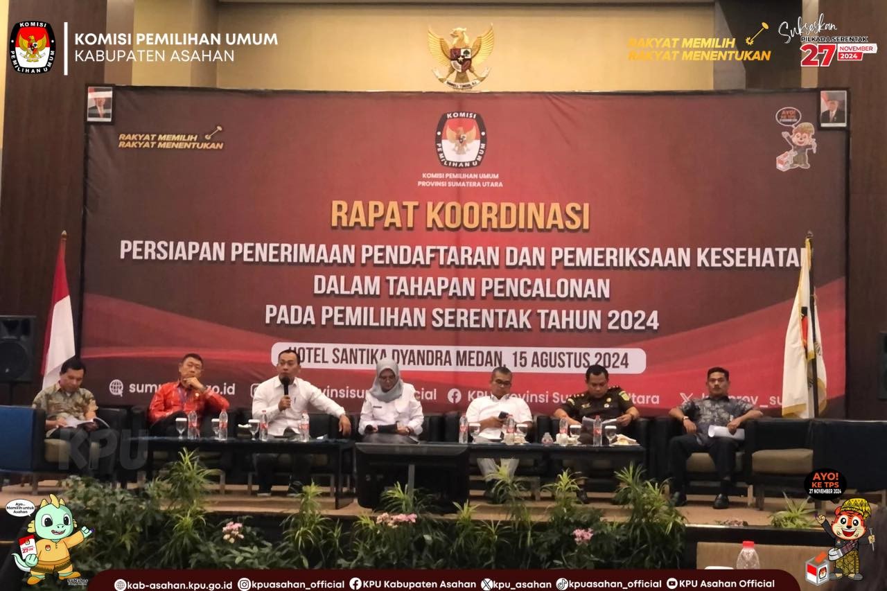 KPU ASAHAN MENGHADIRI RAPAT KOORDINASI PERSIAPAN PENERIMAAN PENDAFTARAN DAN PEMERIKSAAN KESEHATAN DALAM TAHAPAN PENCALONAN PADA PEMILIHAN SERENTAK TAHUN 2024