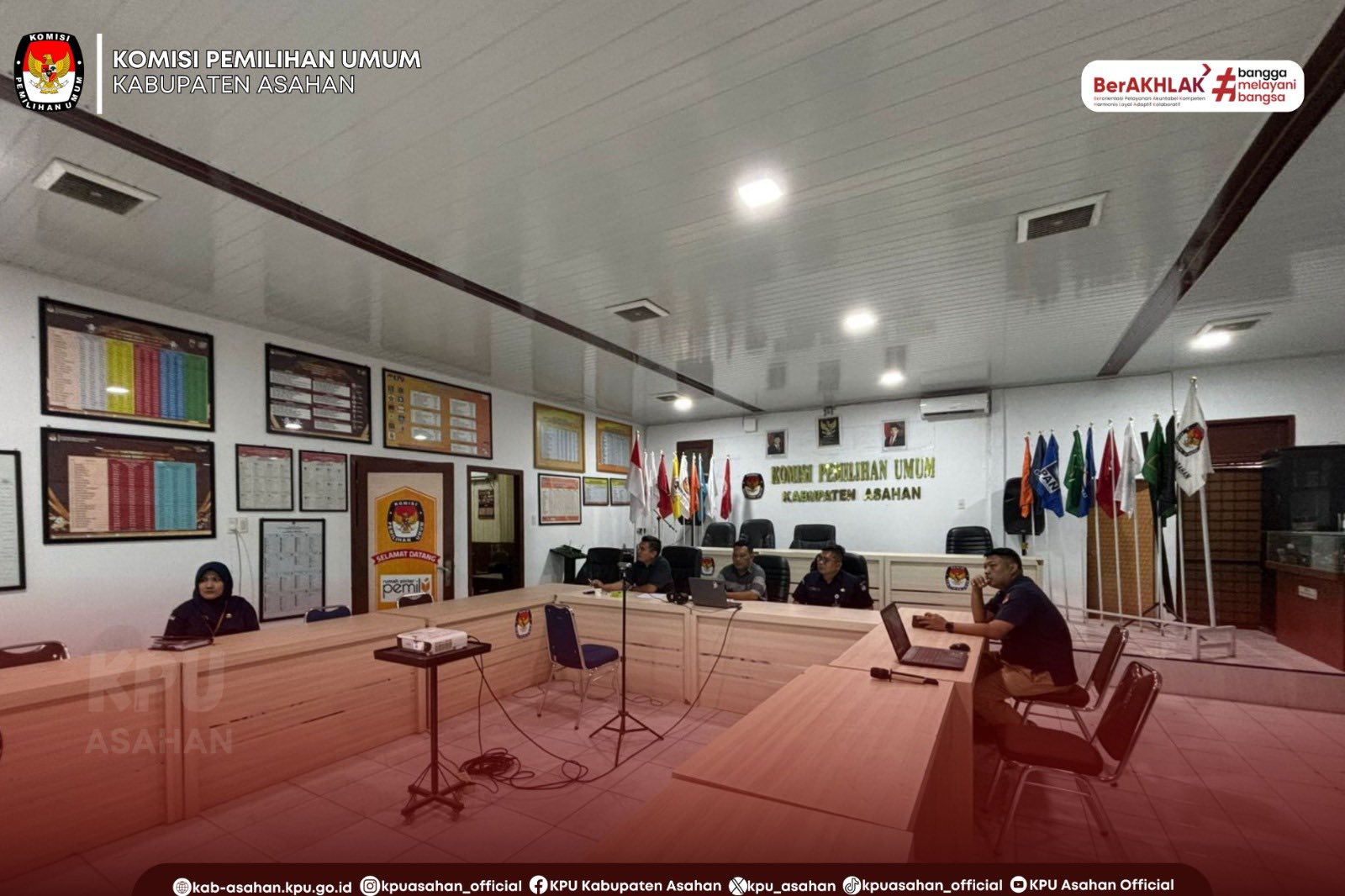 Rapat ini dihadiri oleh Ketua KPU Asahan, Hidayat beserta Anggota KPU Asahan Divisi SDM Parmas, M.Syah didampingi Sekretaris KPU Asahan, Ery Dermawan beserta Kasubbag Keuangan, Umum dan Logistik, H.P. Harahap dan staf Parmas.
