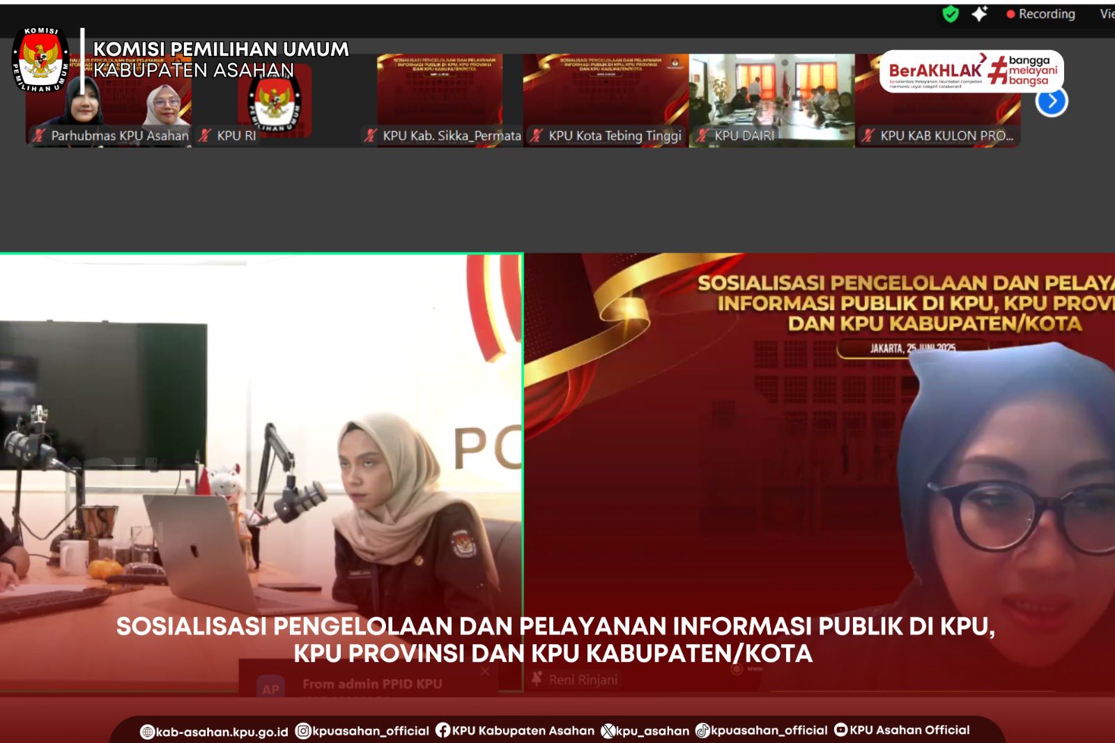 KPU Kabupaten Asahan mengikuti Sosialisasi Pengelolaan dan Pelayanan Informasi Publik di KPU, KPU Provinsi dan KPU Kabupaten/Kota yang diselenggarakan secara daring oleh KPU Republik Indonesia bertempat di kantor KPU Asahan, Rabu (25/06/25).