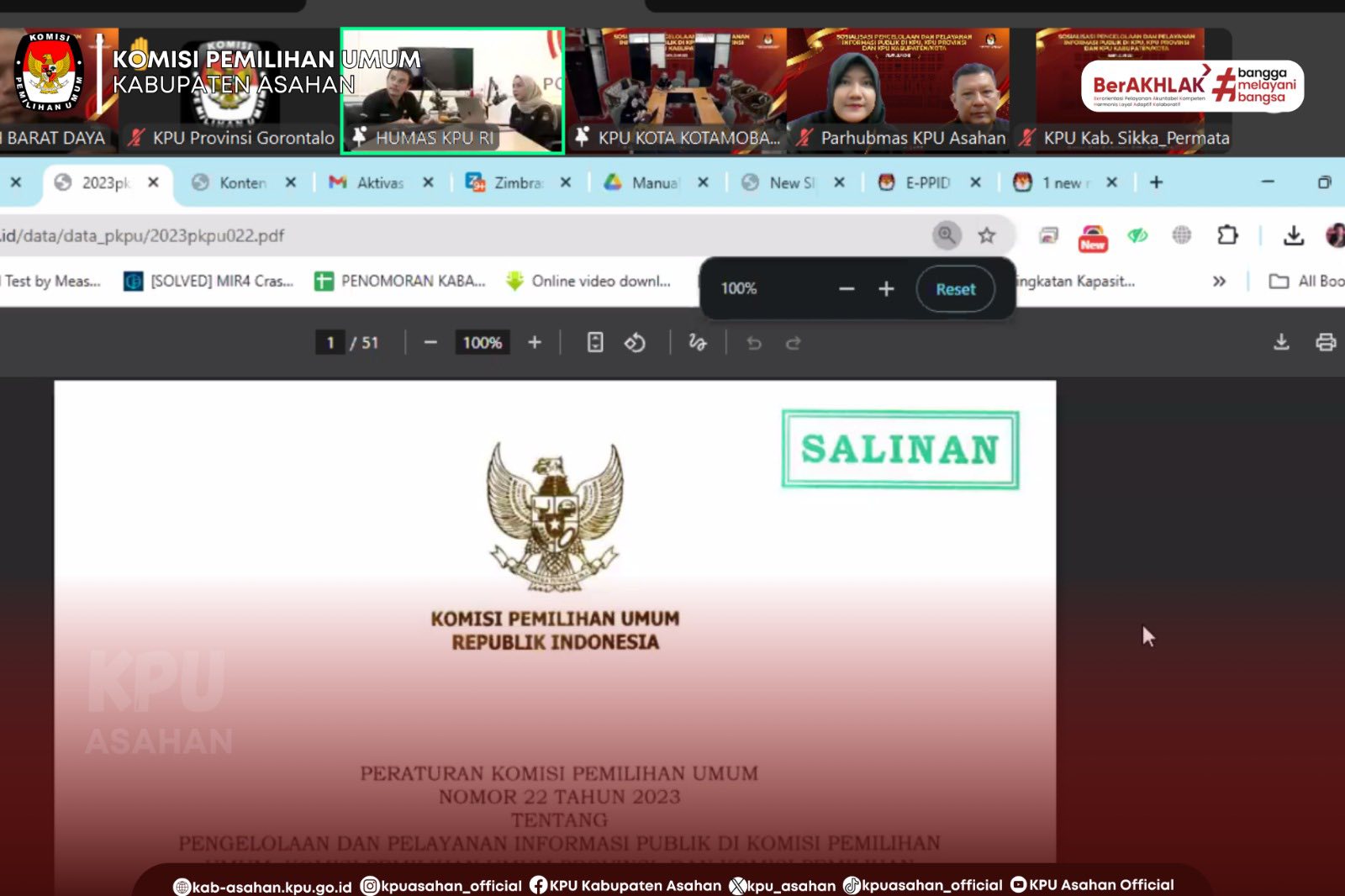KPU ASAHAN MENGIKUTI ZOOM MEETING SOSIALISASI PENGELOLAAN DAN PELAYANAN INFORMASI PUBLIK DI KPU, KPU PROVINSI DAN KPU KABUPATEN/KOTA