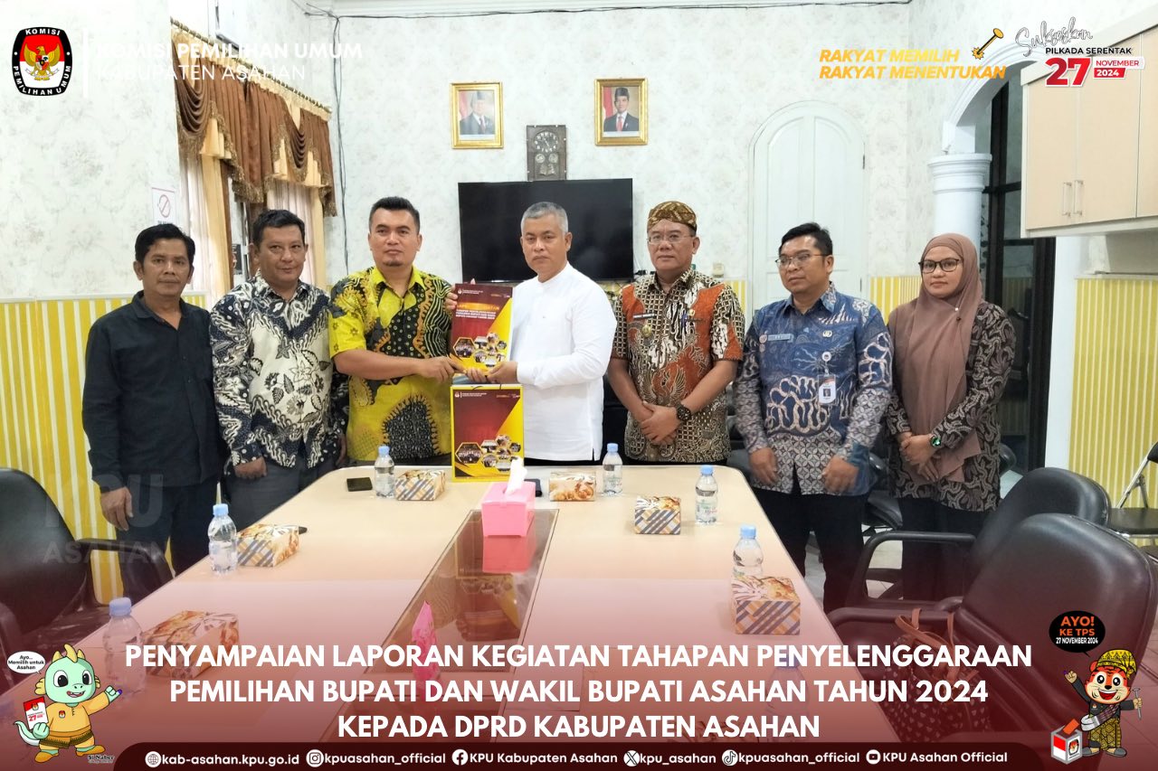 Laporan tersebut diterima langsung oleh Ketua DPRD Asahan, H. Efi Irwansyah Pane, M. K. M. didampingi Sekretaris DPRD Asahan, Syahrul Efendi Tambunan, S.H. Kegiatan ini bertujuan untuk memastikan transparansi dan akuntabilitas dalam setiap tahapan penyelenggaraan Pemilihan Bupati dan Wakil Bupati Asahan Tahun 2024. Melalui penyampaian laporan ini, KPU Asahan ingin memberikan gambaran menyeluruh kepada DPRD Kabupaten Asahan mengenai progres tahapan yang telah dilaksanakan, serta membangun sinergi antara penyelenggara pemilu dan lembaga legislatif dalam menciptakan pemilihan yang demokratis, jujur, dan adil.