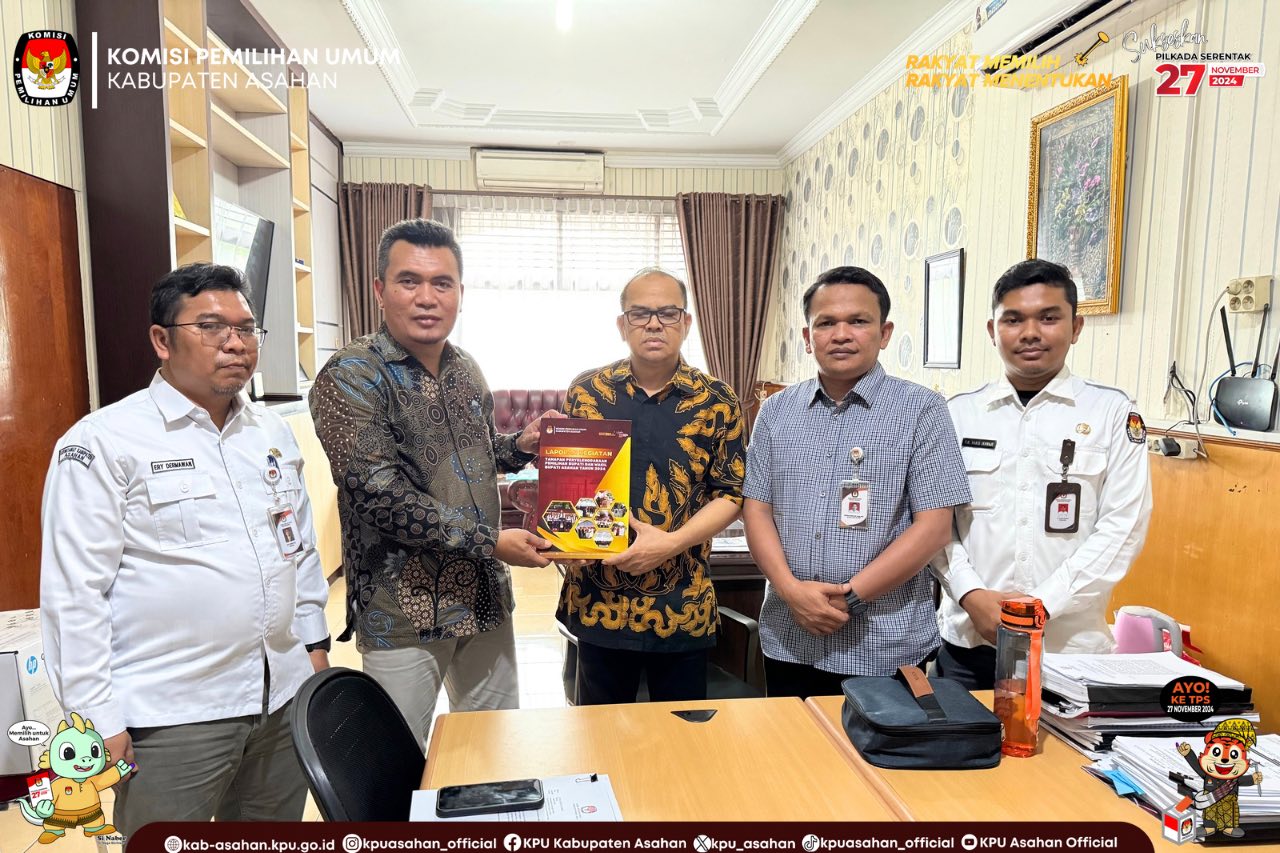 Penyampaian Laporan tersebut diserahkan langsung oleh Ketua KPU Asahan, Hidayat didampingi Sekretaris KPU Asahan, Ery Dermawan, serta Staf Sekretariat KPU Asahan, Anggi Anggara Ritonga, T.M. Haris Ikhraji dan Ahmad Rivai Sitorus.