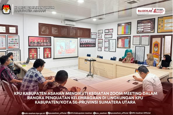 KPU Kabupaten Asahan mengikuti kegiatan zoom meeting dalam rangka Penguatan Kelembagaan di Lingkungan KPU Kabupaten/Kota se-Provinsi Sumatera Utara, Jumat (25/07/2025).