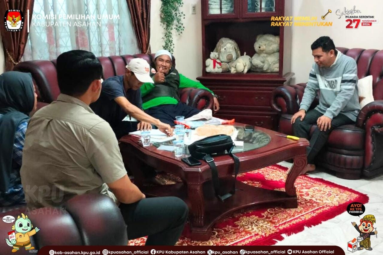 Pelaksanaan Pencocokan dan Penelitian (Coklit) oleh Petugas Pemutakhiran Data Pemilih (Pantarlih) di kediaman Komisioner KPU Kabupaten Asahan Divisi Perencanaan, Data dan Informasi, Kristian Santo Yosefh Sinulingga dan kediaman Anggota KPU Asahan Divisi Teknis Penyelenggaran, Pangulu Siregar, Jum'at (28/06/24).