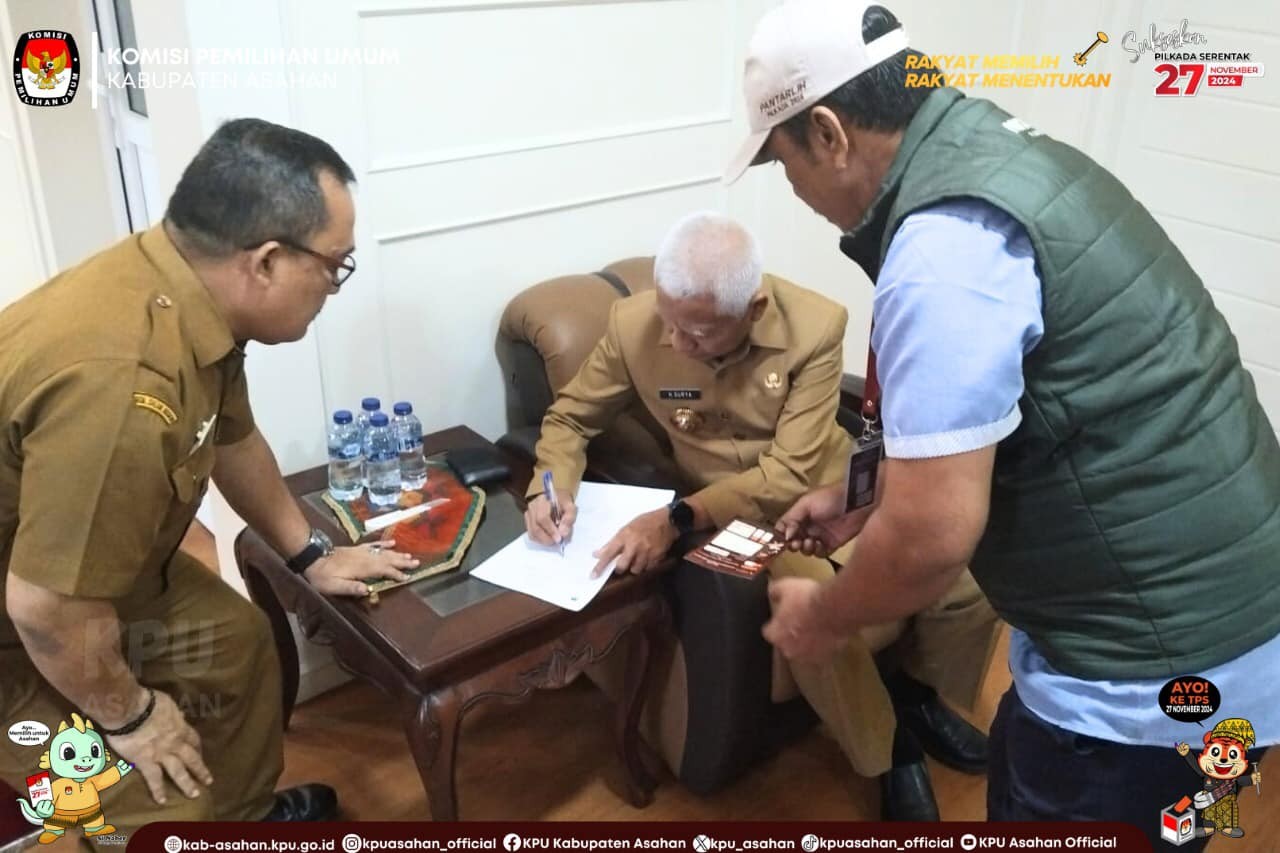 KPU Asahan menghadiri pelaksanaan Pencocokan dan Penelitian (Coklit) oleh Petugas Pemutakhiran Data Pemilih (Pantarlih) di kediaman Rumah Dinas Bupati Asahan H. Surya, B.Sc, Selasa (16/07/24).