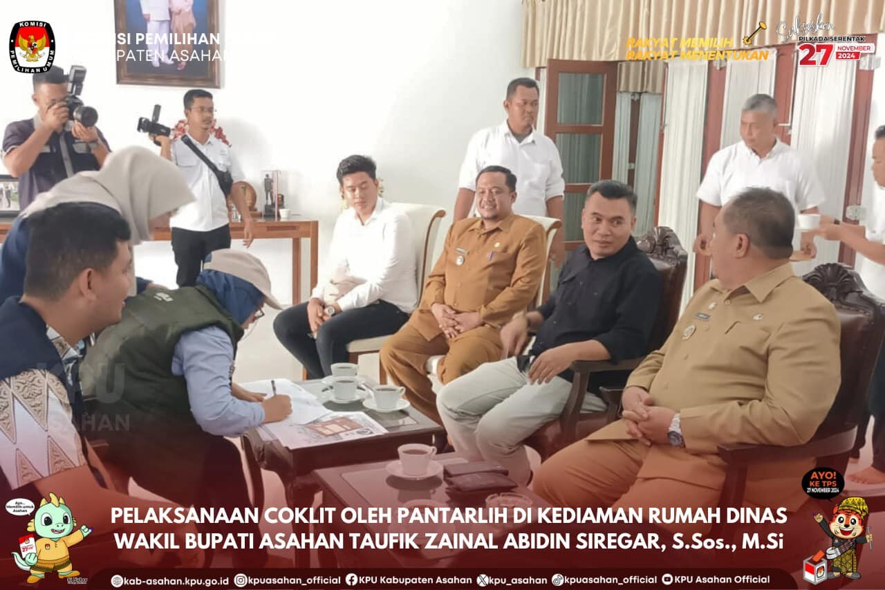 KPU Asahan menghadiri pelaksanaan Pencocokan dan Penelitian (Coklit) oleh Petugas Pemutakhiran Data Pemilih (Pantarlih) di kediaman Rumah Dinas Wakil Bupati Asahan Taufik Zainal Abidin Siregar, S.Sos., M.Si, Rabu (24/07/24).