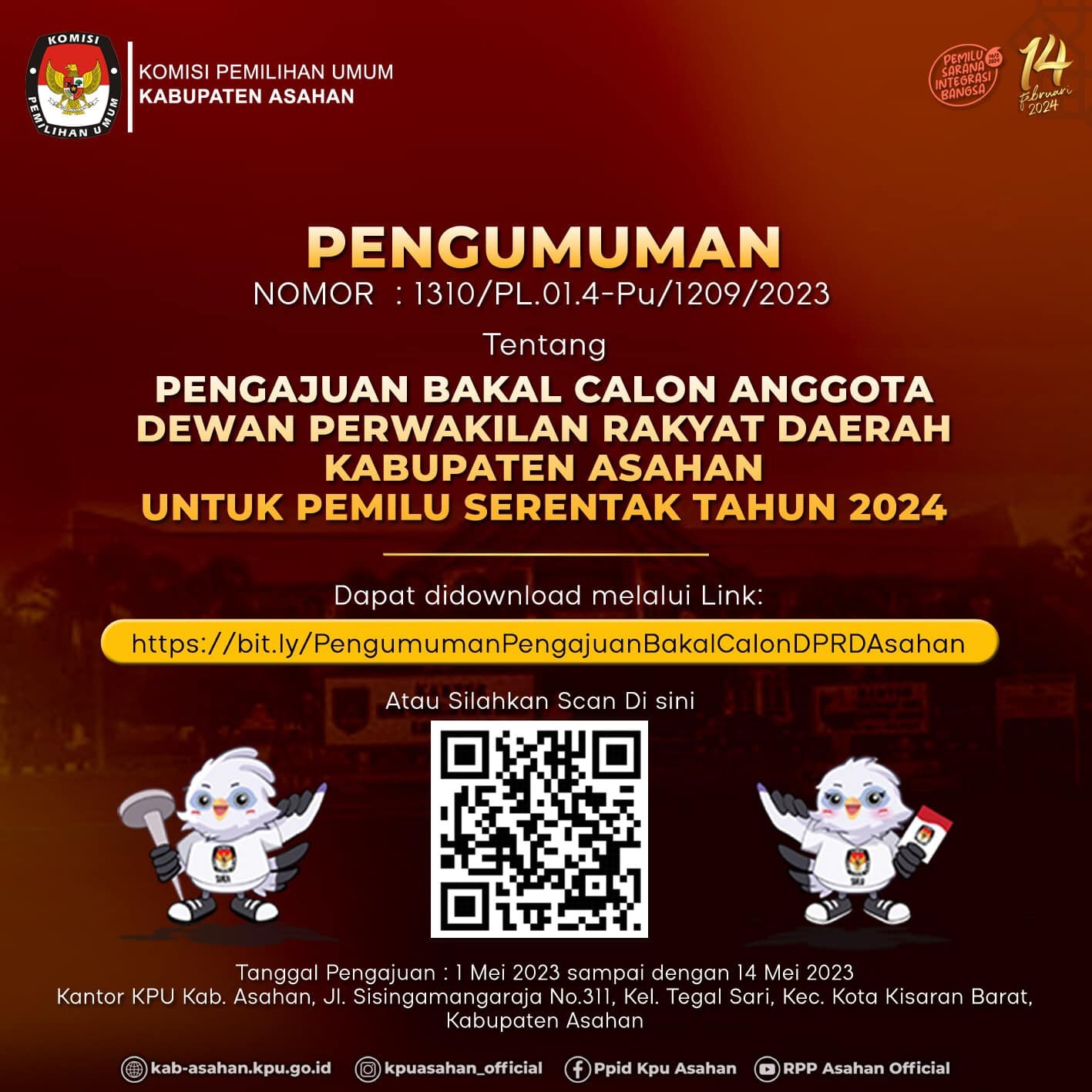 Dapat dilihat melalui link https://bit.ly/PengumumanPengajuanBakalCalonDPRDAsahan