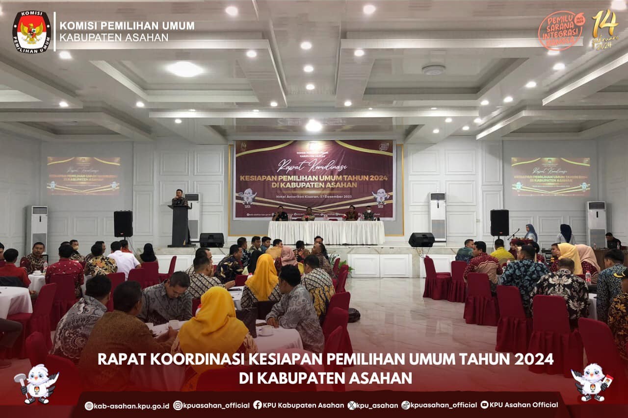 #TemanPemilih, KPU Asahan melaksanakan kegiatan Rapat Koordinasi Kesiapan Pemilihan Umum Tahun 2024 di Ballroom Antariksa Hotel Kisaran, Rabu (27/12/23).