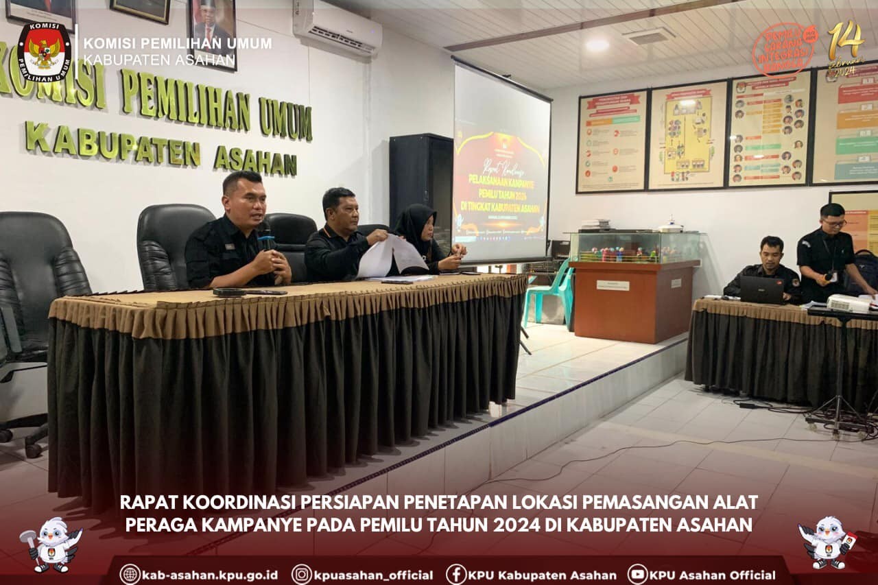 RAPAT KOORDINASI PERSIAPAN PENETAPAN LOKASI PEMASANGAN ALAT PERAGA KAMPANYE PADA PEMILU TAHUN 2024 DI KABUPATEN ASAHAN