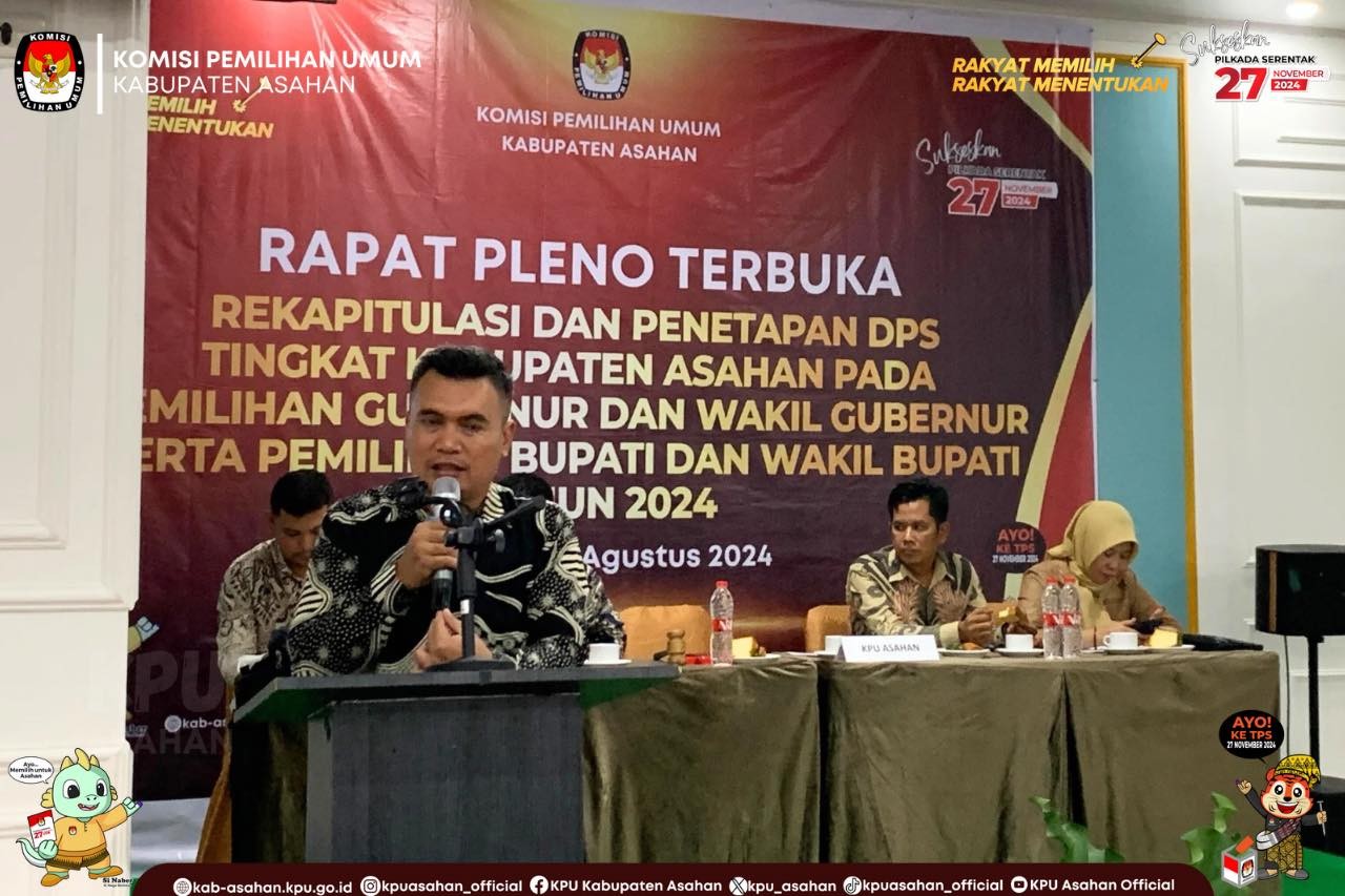 RAPAT PLENO TERBUKA REKAPITULASI DAN PENETAPAN DAFTAR PEMILIH SEMENTARA (DPS) TINGKAT KABUPATEN ASAHAN PADA PILKADA SERENTAK TAHUN 2024