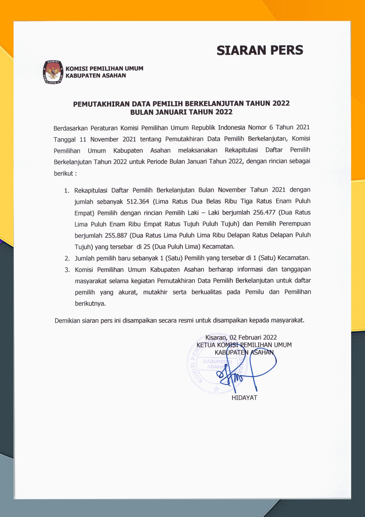 SIARAN PERS PEMUTAKHIRAN DAFTAR PEMILIH BERKELANJUTAN TAHUN 2022 PERIODE JANUARI 2022
