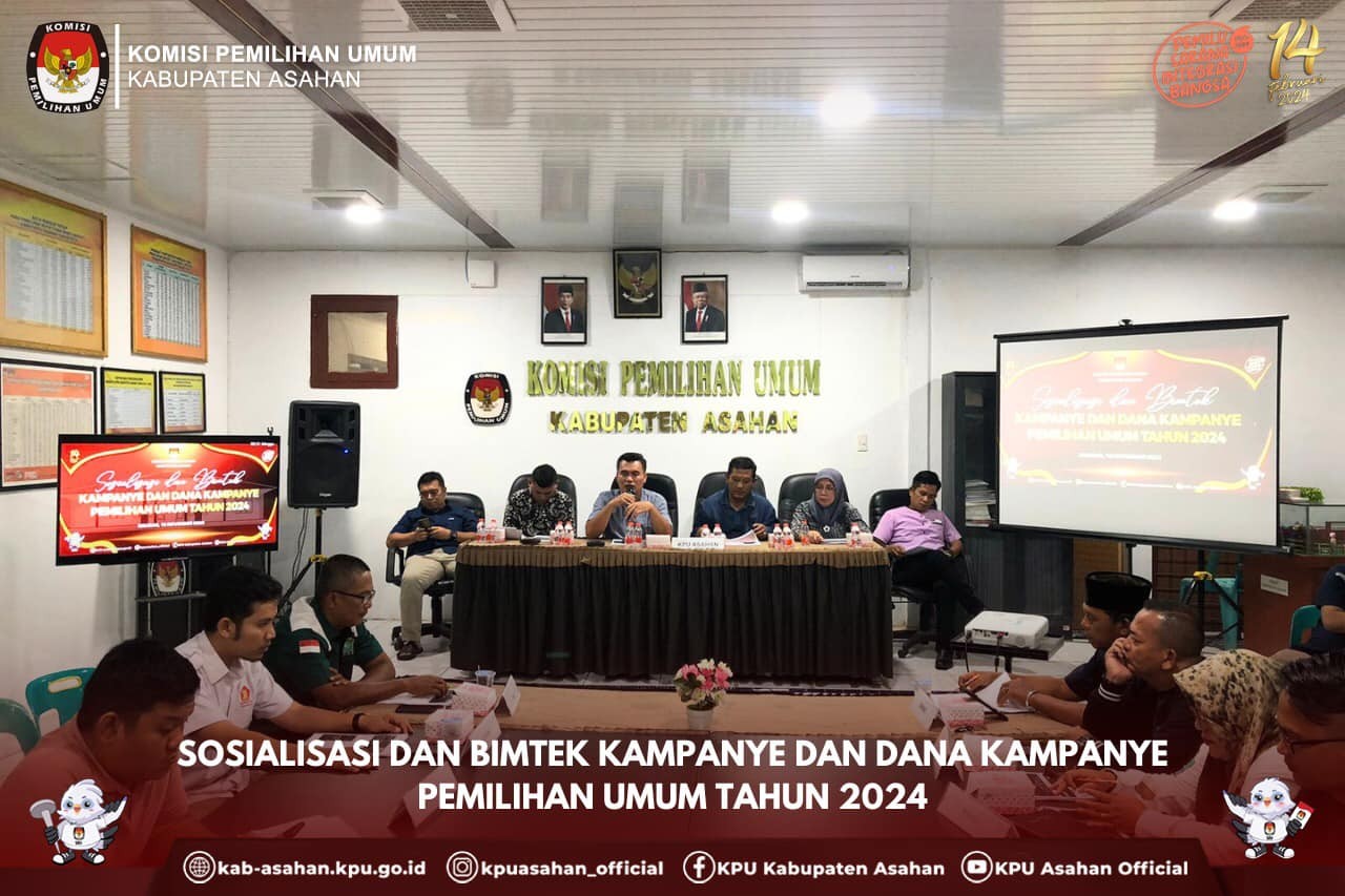 KPU Asahan melaksanakan Sosialisasi dan Bimtek Kampanye dan Dana Kampanye Pemilihan Umum Tahun 2024 di Aula KPU Asahan, Sabtu (18/11/23).