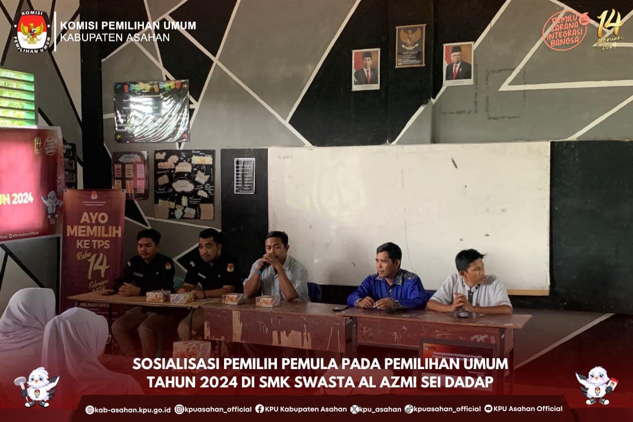 KPU Asahan melaksanakan Sosialisasi Pemilih Pemula Pada Pemilihan Umum Tahun 2024 di Sekolah SMK Swasta Al Azmi Sei Dadap, Rabu (13/12/23).