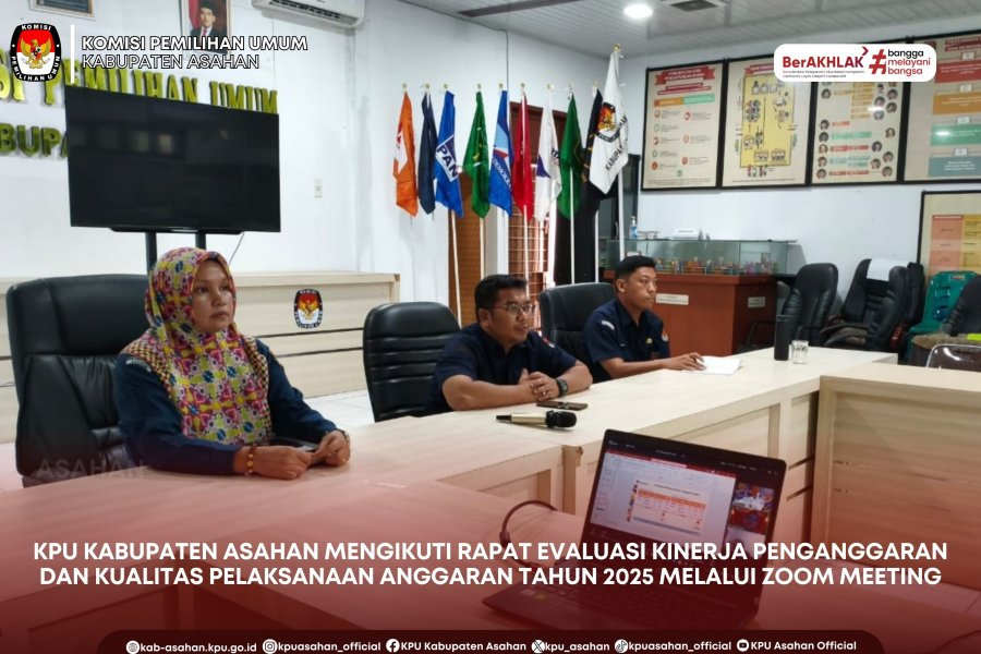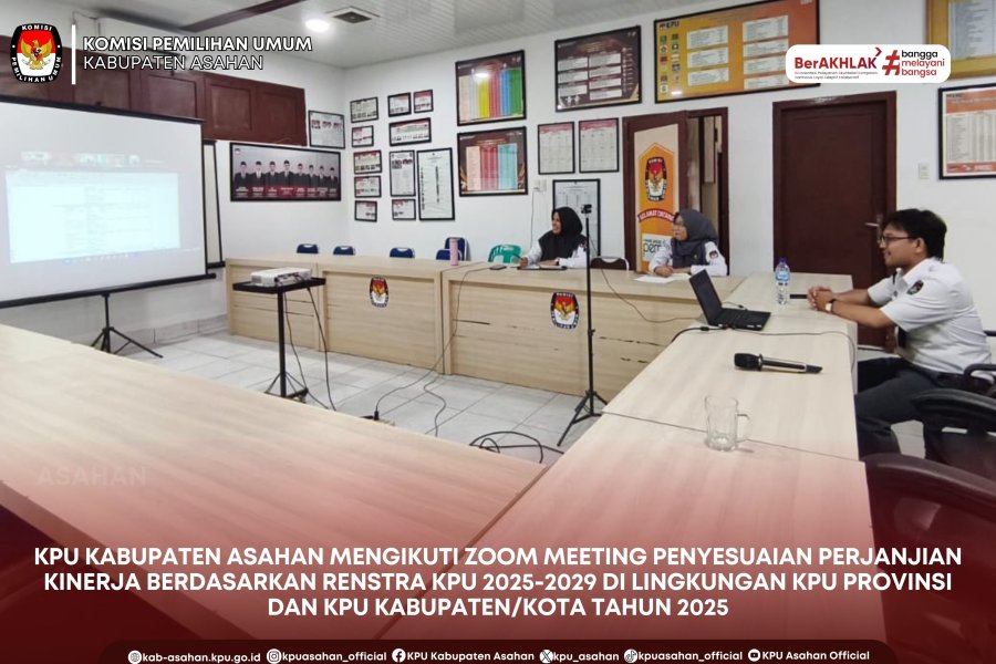 KPU Kabupaten Asahan Mengikuti Zoom Meeting Penyesuaian Perjanjian Kinerja berdasarkan Renstra KPU 2025-2029 Di Lingkungan KPU Provinsi dan KPU Kabupaten/Kota Tahun 2025, Senin(05/01/25). Dari KPU Kabupaten Asahan dihadiri oleh Kasubbag Perencanaan, Data dan Informasi KPU Kabupaten Asahan Sri Elkaida Harahap dan staf KPU Kabupaten Asahan. Melalui rapat koordinasi ini, dilakukan pembahasan mendalam oleh KPU RI terkait indikator kinerja, sasaran strategis, serta penyesuaian program dan kegiatan yang akan diterapkan selama periode Renstra 2025–2029. Penyesuaian tersebut diharapkan dapat meningkatkan efektivitas dan akuntabilitas pelaksanaan tugas dan fungsi KPU di daerah. Kegiatan ini dilaksanakan sebagai langkah untuk menyelaraskan perencanaan sekaligus memperkuat akuntabilitas kinerja, sehingga pelaksanaan tugas dan fungsi kelembagaan dapat berjalan sejalan dengan arah kebijakan strategis KPU untuk lima tahun mendatang. Dengan adanya penyesuaian Perjanjian Kinerja berdasarkan Renstra 2025–2029, KPU Kabupaten Asahan siap mendukung terwujudnya penyelenggaraan pemilu dan pemilihan yang berkualitas, demokratis, serta berlandaskan peraturan perundang-undangan.