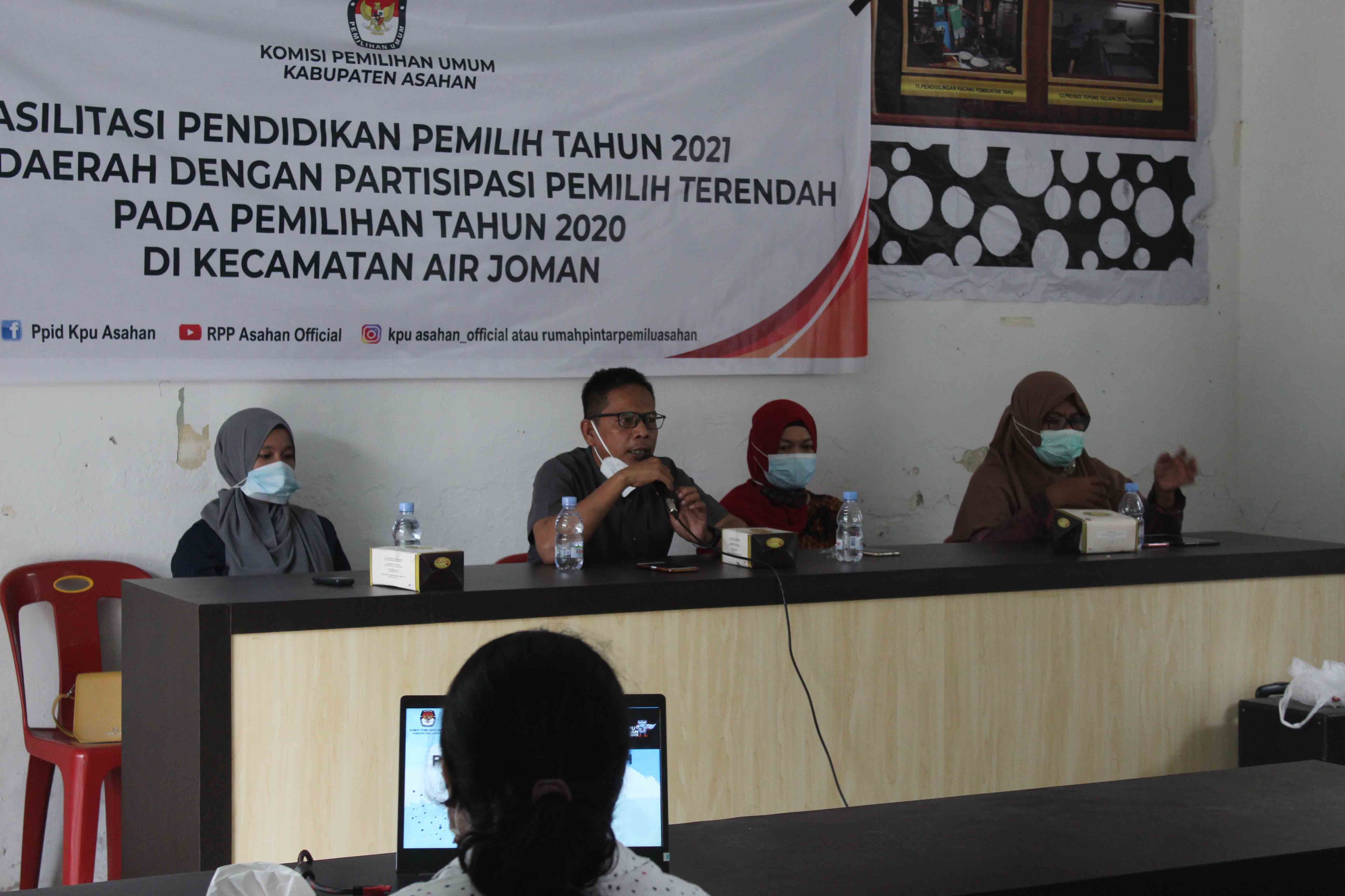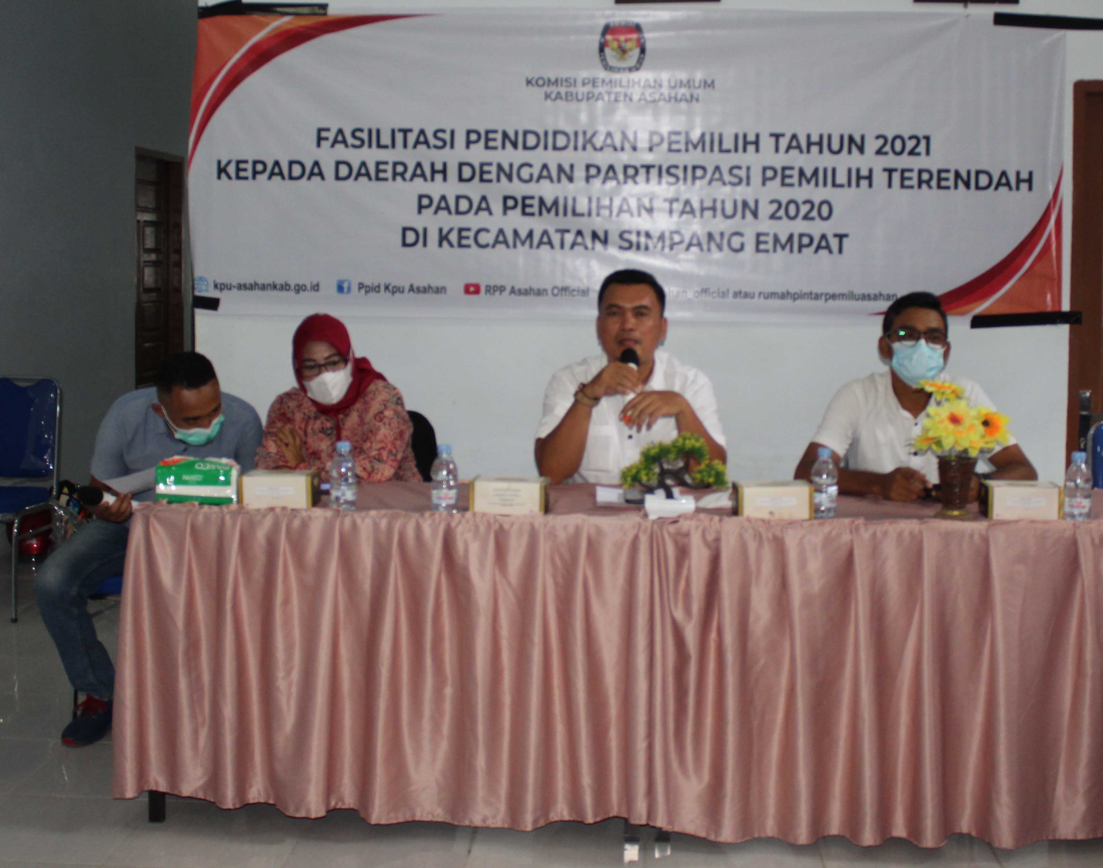 Rabu (7/7/2021), kab-asahan.kpu.go.id - KPU Asahan melanjutkan kembali kegiatan Sosialisasi Fasilitasi Pendidikan Pemilih yang kali ini dilaksanakan di Balai Desa Simpang Empat Kecamatan Simpang Empat yang partisipasi pemilihnya rendah pada pemilihan Bupati dan Wakil Bupati Asahan tahun 2020.