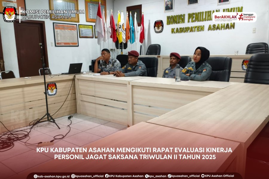 Komisi Pemilihan Umum Kabupaten Asahan mengikuti Rapat Evaluasi Jagat Saksana Triwulan II Tahun 2025, Jumat (29/08/25). Rapat evaluasi ini diselenggarakan secara daring oleh KPU RI yang diikuti oleh Kasubbag Keuangan, Umum dan Logistik KPU Kabupaten Asahan H.P. Harahap beserta seluruh personil Jagat Saksana KPU Kabupaten Asahan, Handri Wiranta, Chairul Ramadhana, dan Rina Iriani di Aula Kantor KPU Kabupaten Asahan. Sehubungan dengan surat Sekretaris Jenderal Komisi Pemilihan Umum Nomor 1154/RT.09-Und/03/2025, KPU Kabupaten Asahan melaksanakan rapat evaluasi kinerja bagi personil Jagat Saksana sebagai bentuk penguatan komitmen terhadap kualitas kerja dan integritas kelembagaan. Evaluasi ini bertujuan untuk meninjau capaian kerja triwulan, mengidentifikasi kendala lapangan, serta menyusun langkah strategis dalam mendukung kegiatan kelembagaan. KPU Kabupaten Asahan menekankan pentingnya profesionalisme, akuntabilitas, dan kolaborasi dalam setiap pelaksanaan tugas. Melalui kegiatan ini, KPU Kabupaten Asahan berharap kinerja tim Jagat Saksana dapat terus meningkat sebagai garda terdepan dalam menjaga standar pelayanan publik yang bersih dan transparan.