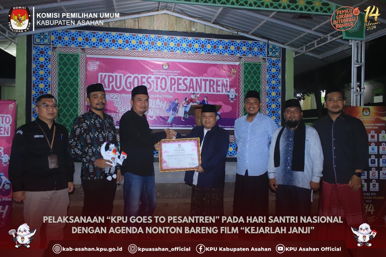 KPU Asahan melaksanakan kegiatan “KPU Goes To Pesantren” pada Hari Santri Nasional di Pondok Pesantren Darul Hikmah, Desa Sei Alim Hasak, Kecamatan Sei Dadap, Minggu (22/10/23).